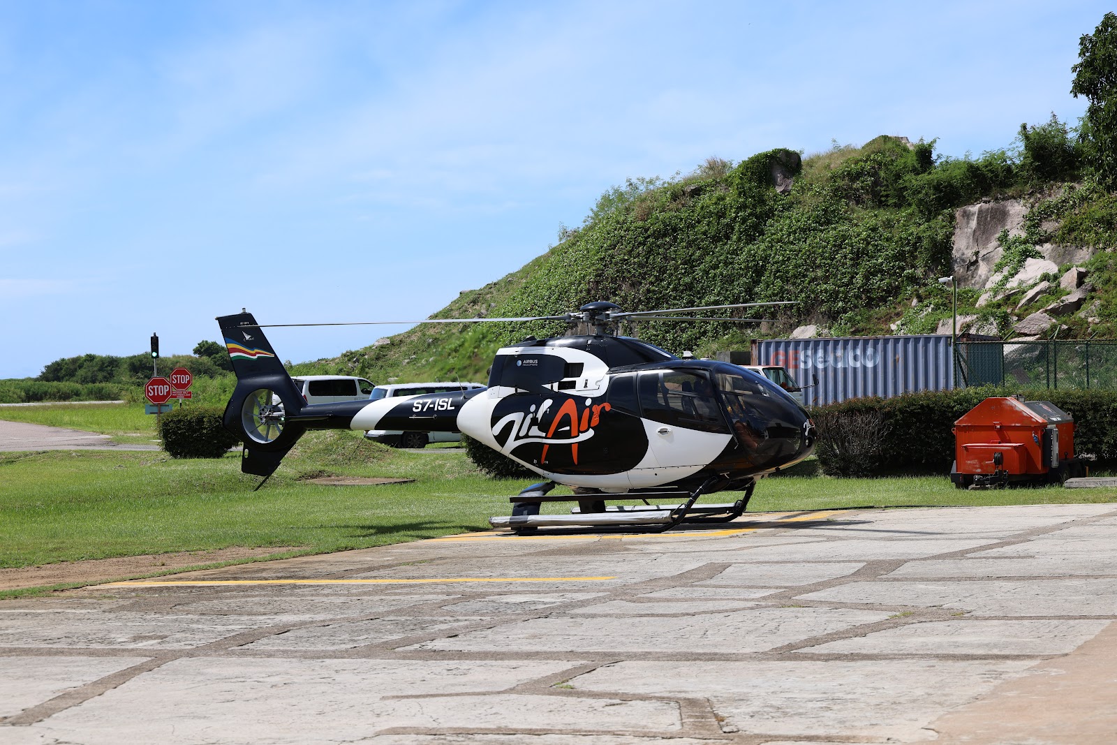 We took a quick helicopter ride from Mahé, flew over Carana Beach Hotel and out to North Island, the room is gigantic and has a separate “office” or guest suite. How will we find time to sit in each chair?